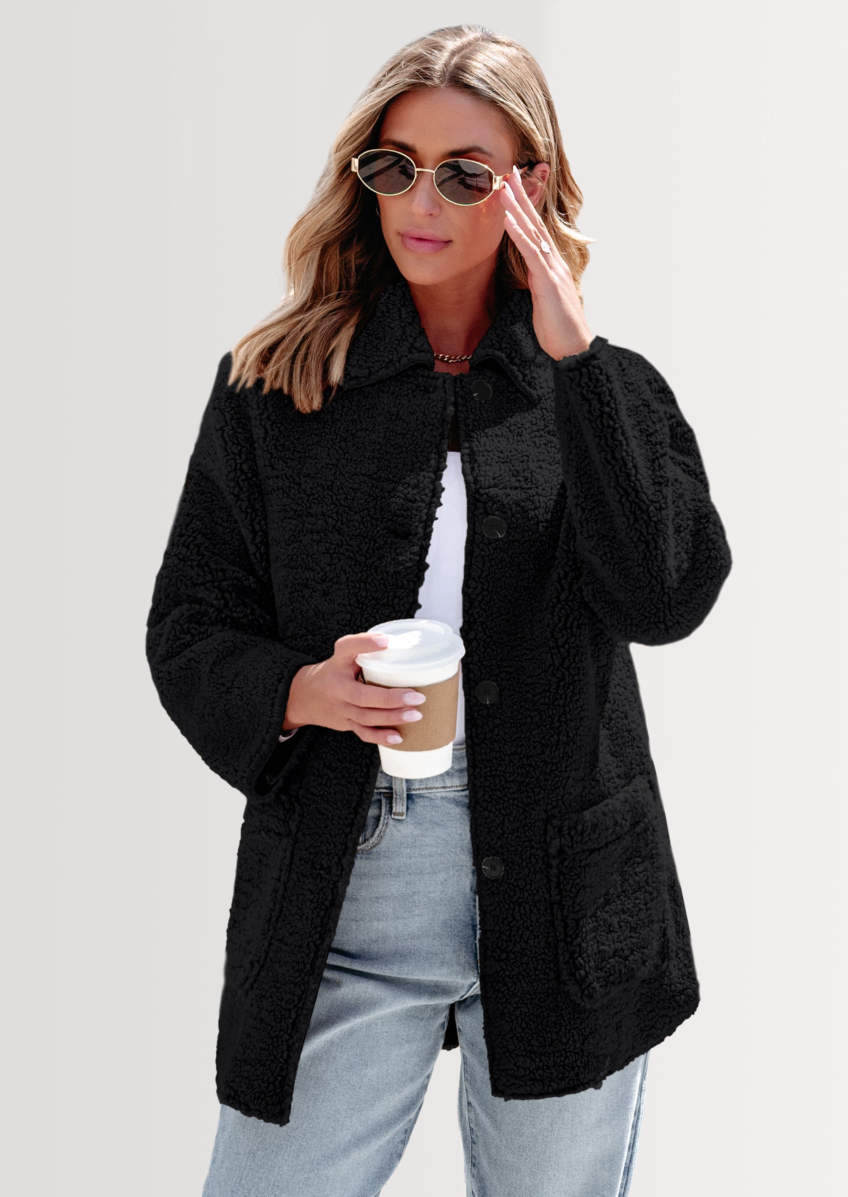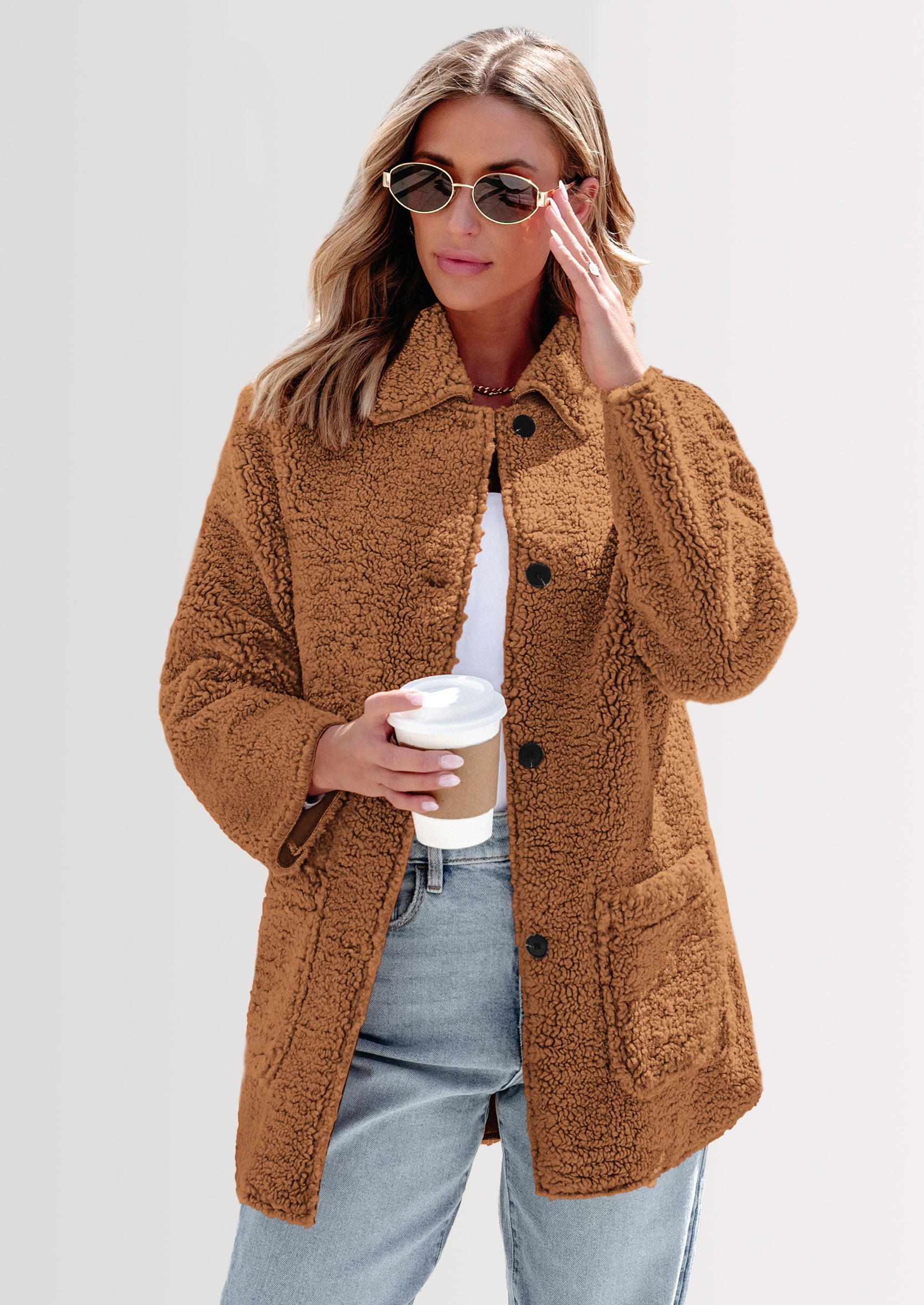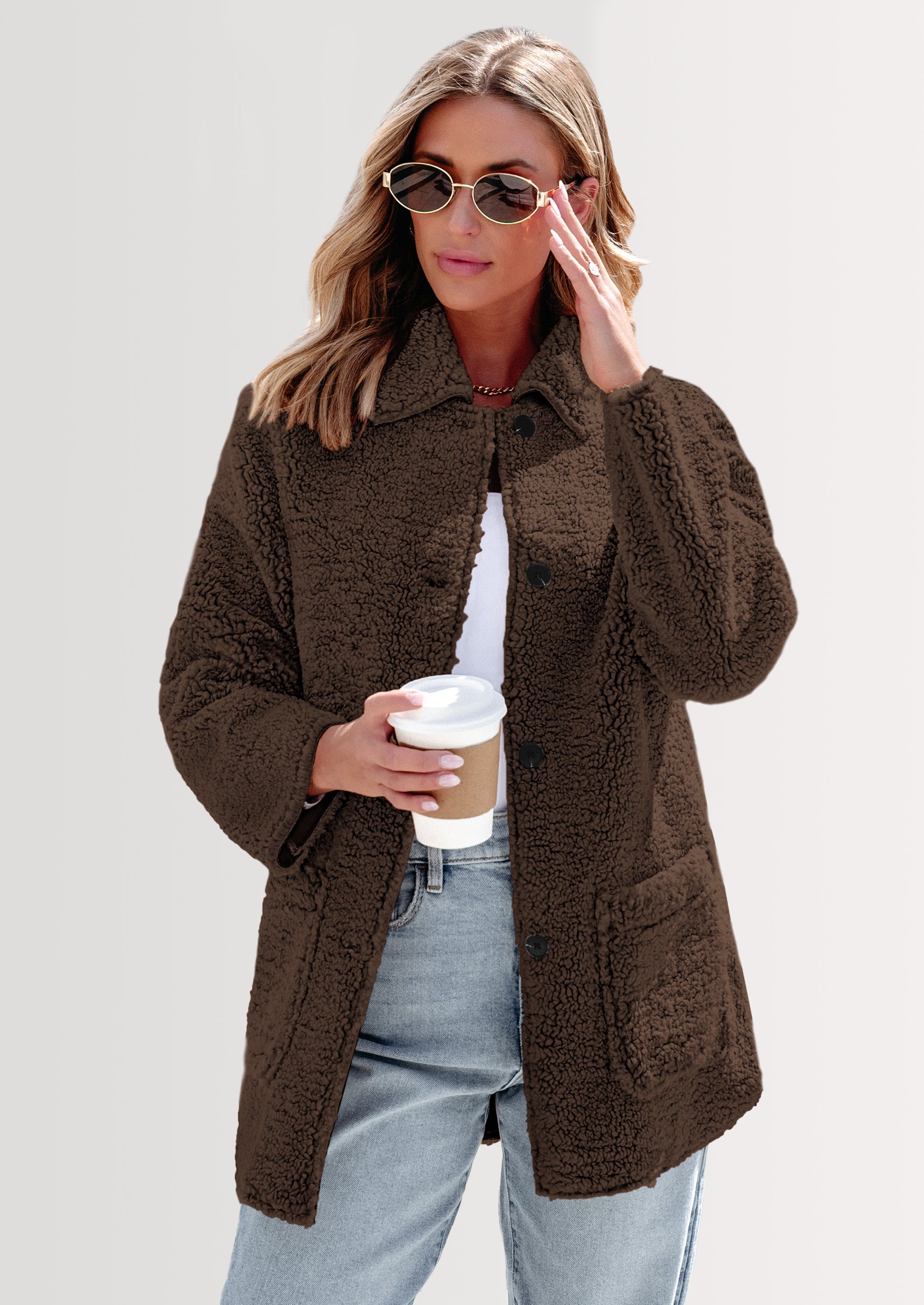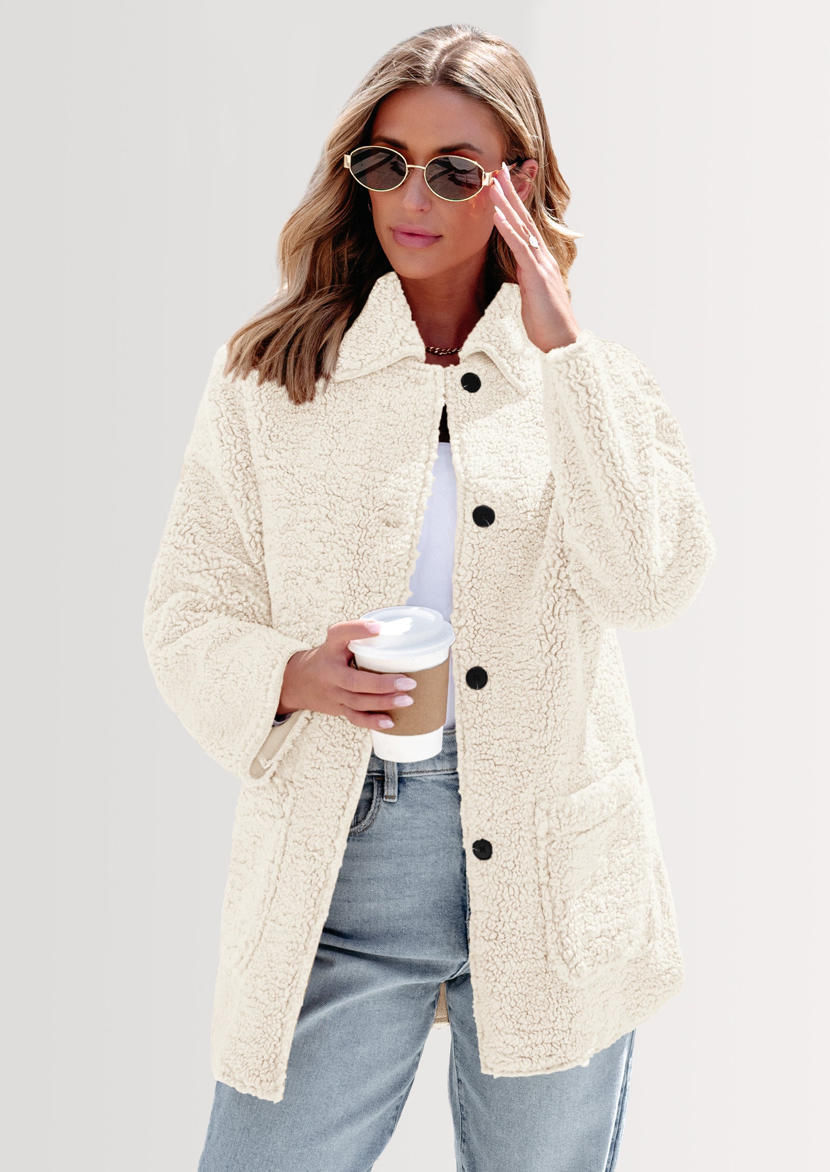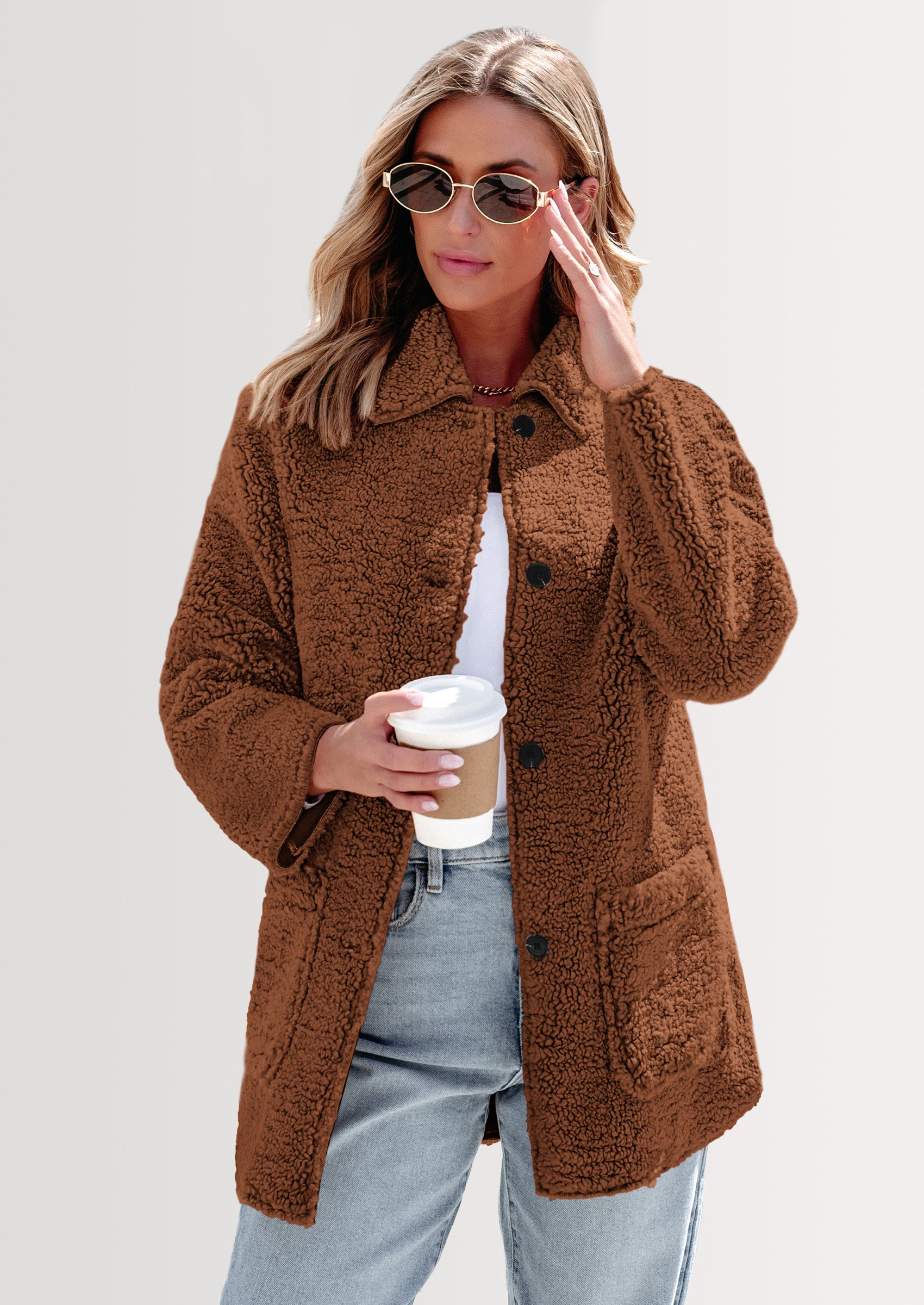 - FEATURES: Winter Jackets For Women/ Button Down Faux Fur Coat/ Trendy Sherpa Jacket Women/ Lapel Collared Jackets For Women Fashion Dressy/ Warm Jackets For Women With Pockets/ Fuzzy Jackets For Women/ Teddy Coat/ Ladies Outerwear/ Fall Winter Outfits For Women