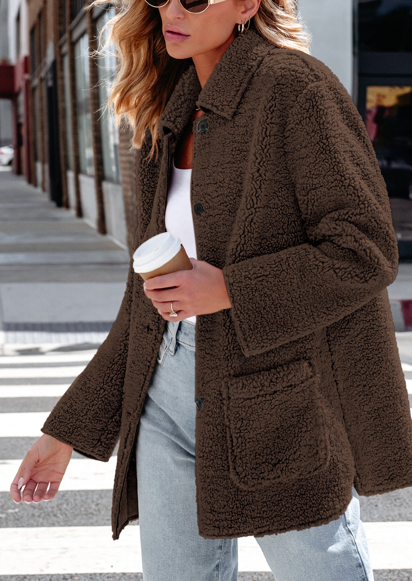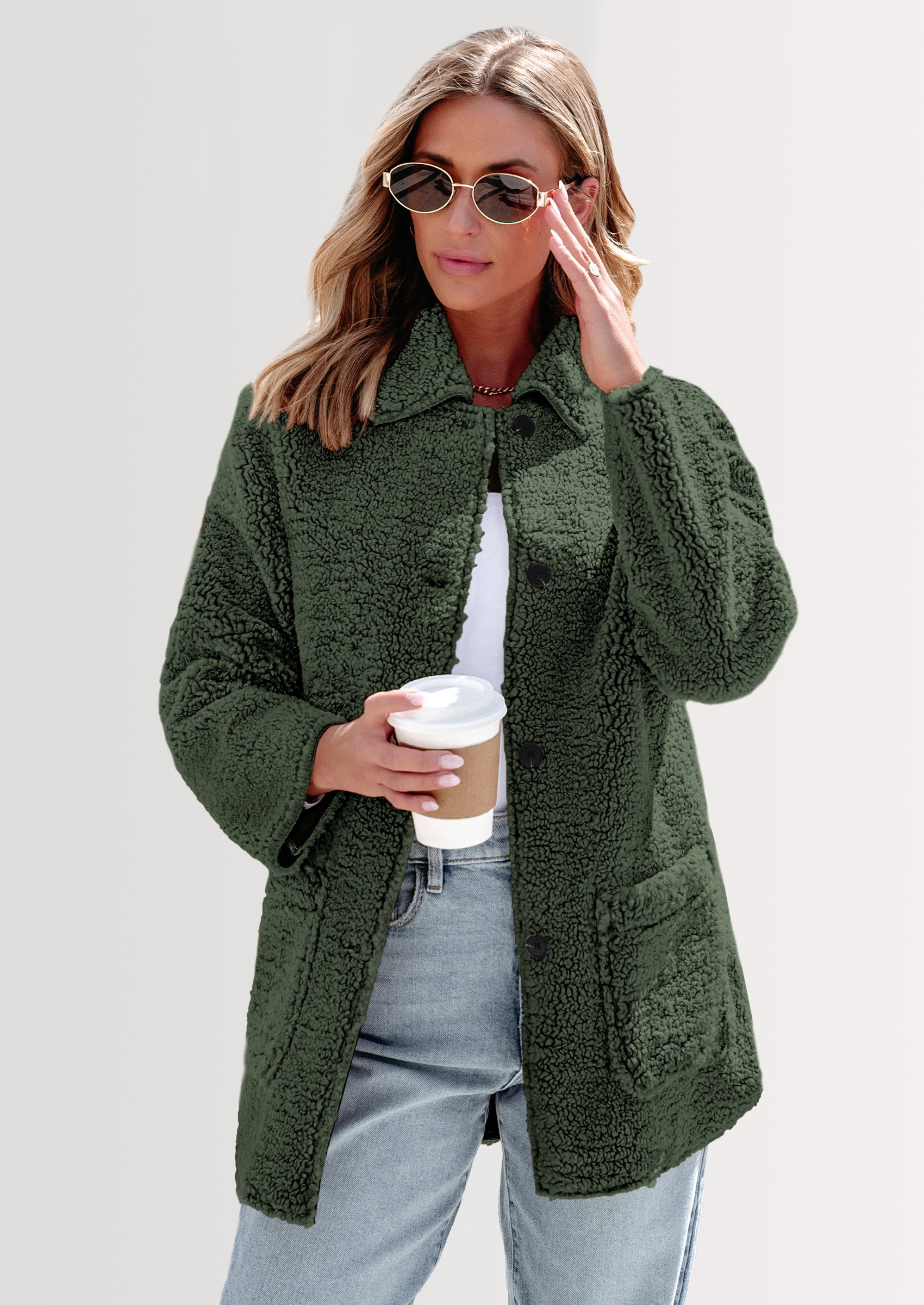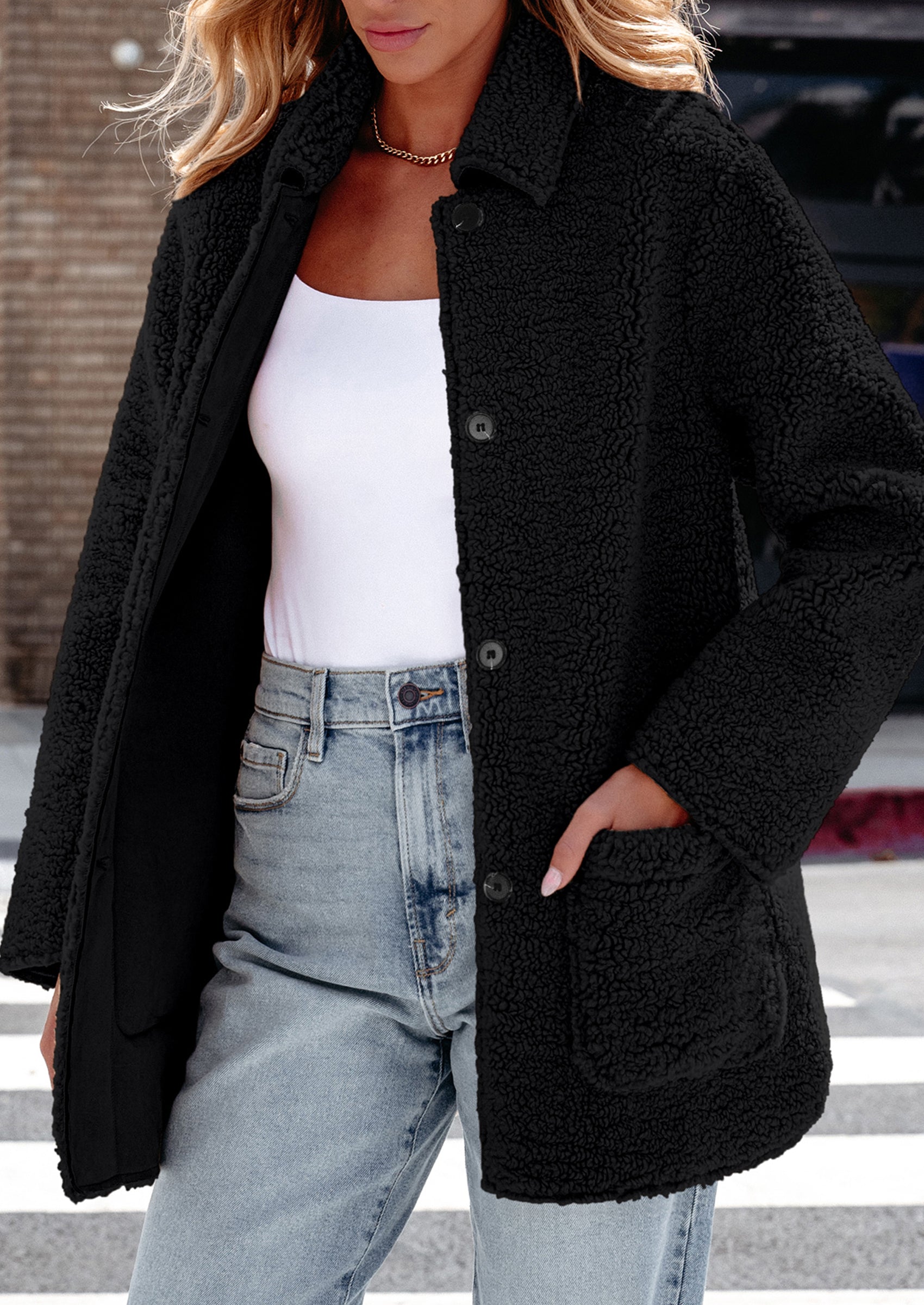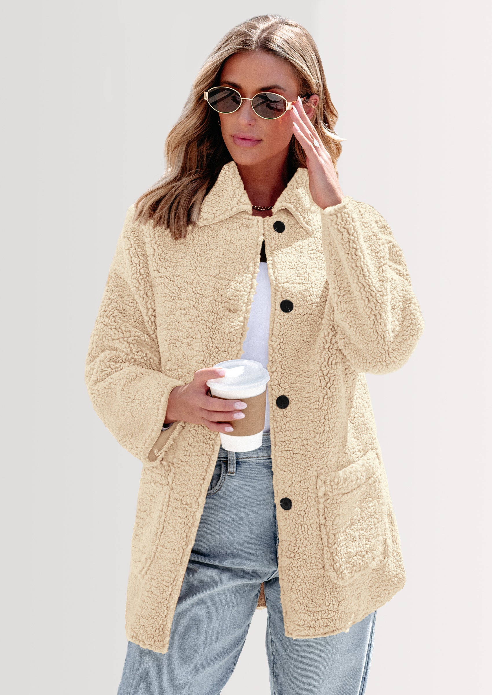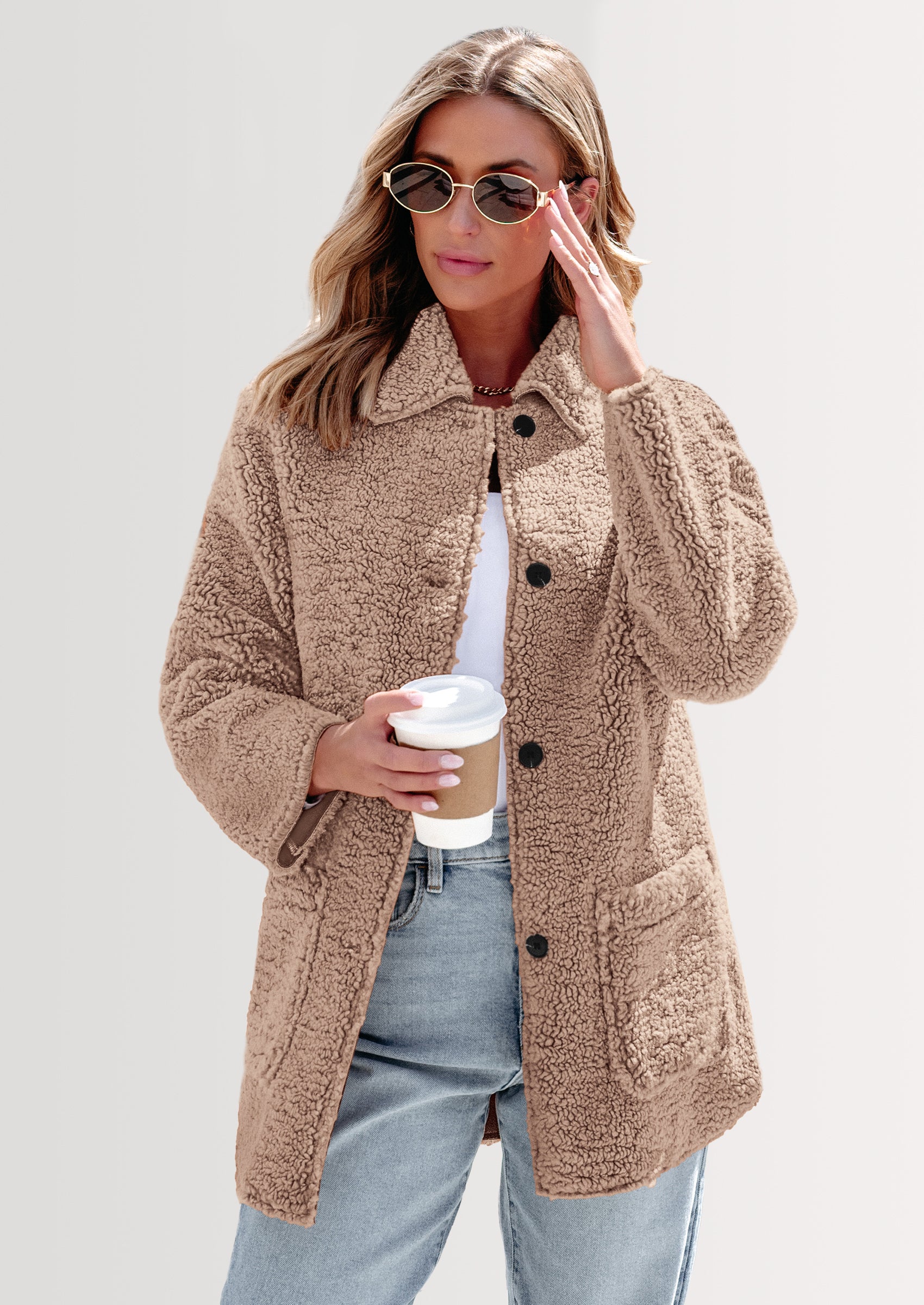 - FEATURES: Winter Jackets For Women/ Button Down Faux Fur Coat/ Trendy Sherpa Jacket Women/ Lapel Collared Jackets For Women Fashion Dressy/ Warm Jackets For Women With Pockets/ Fuzzy Jackets For Women/ Teddy Coat/ Ladies Outerwear/ Fall Winter Outfits For Women