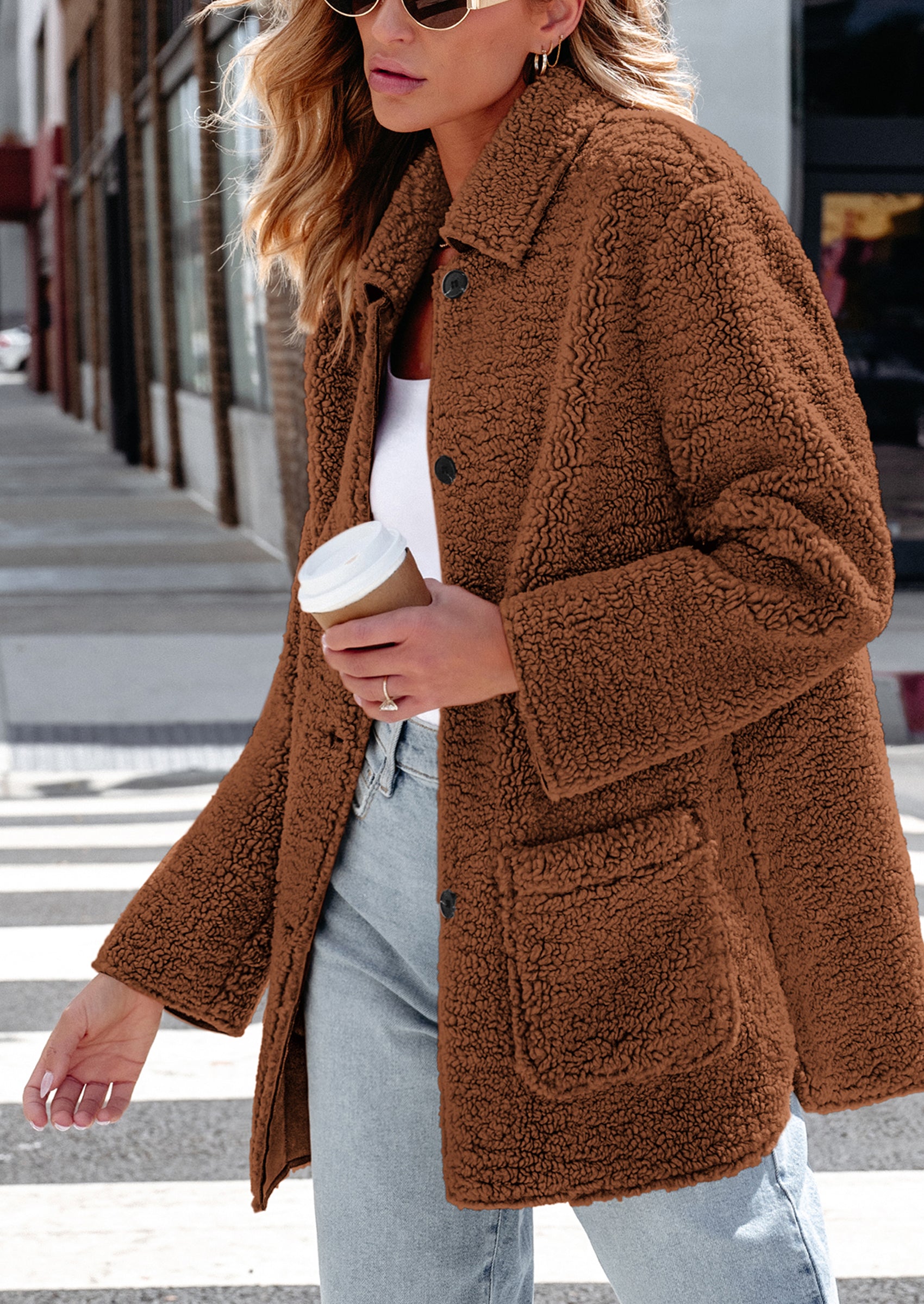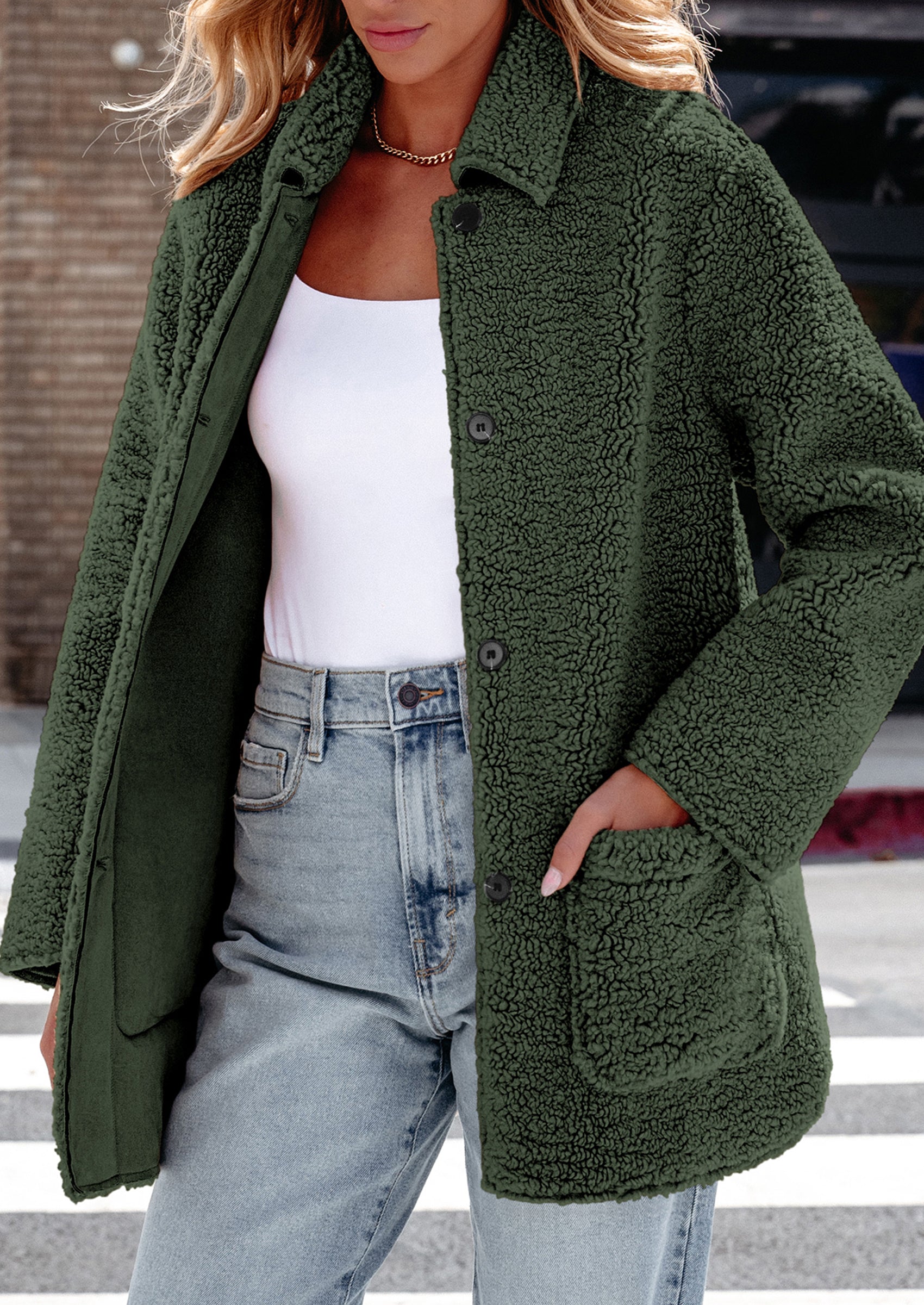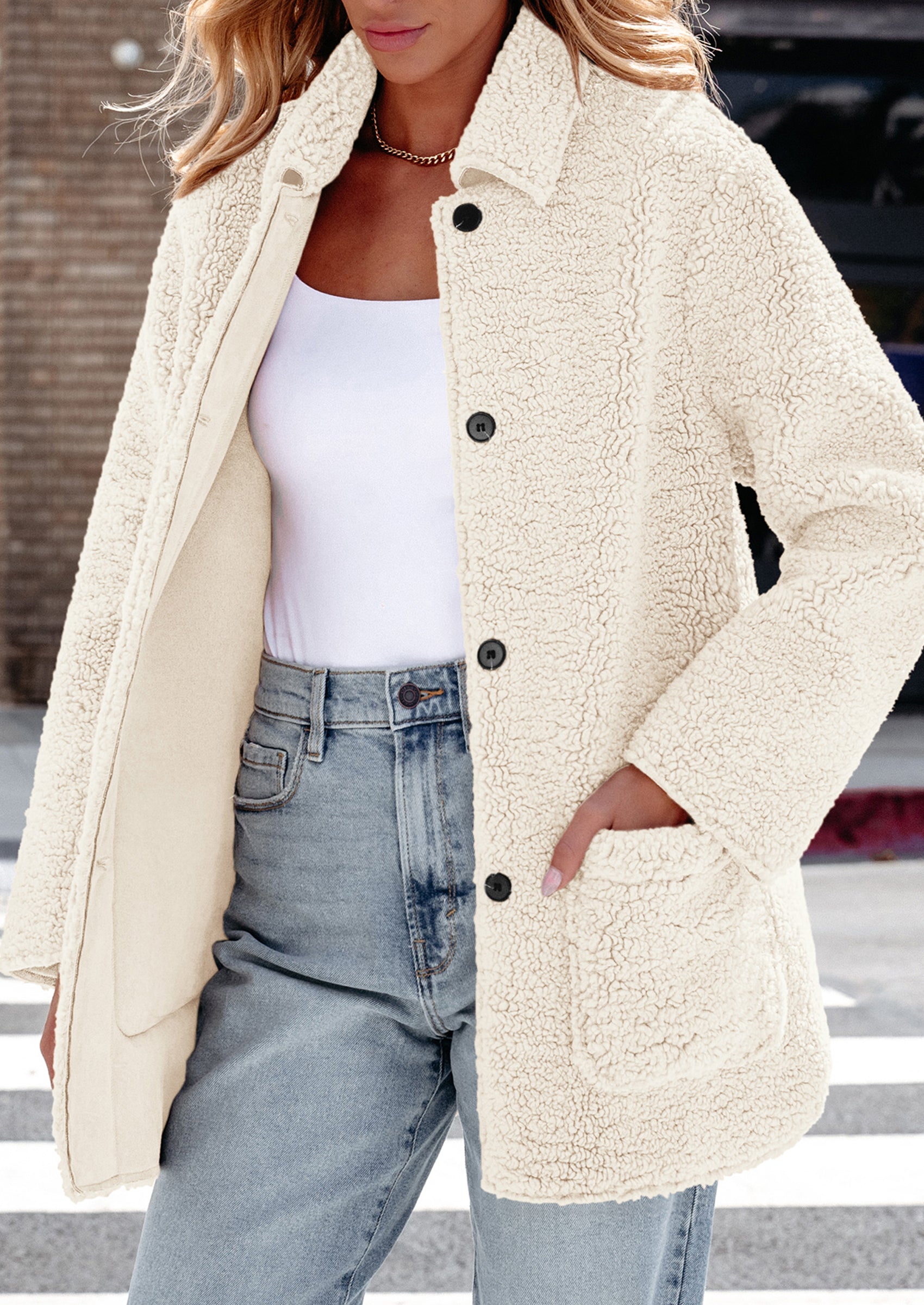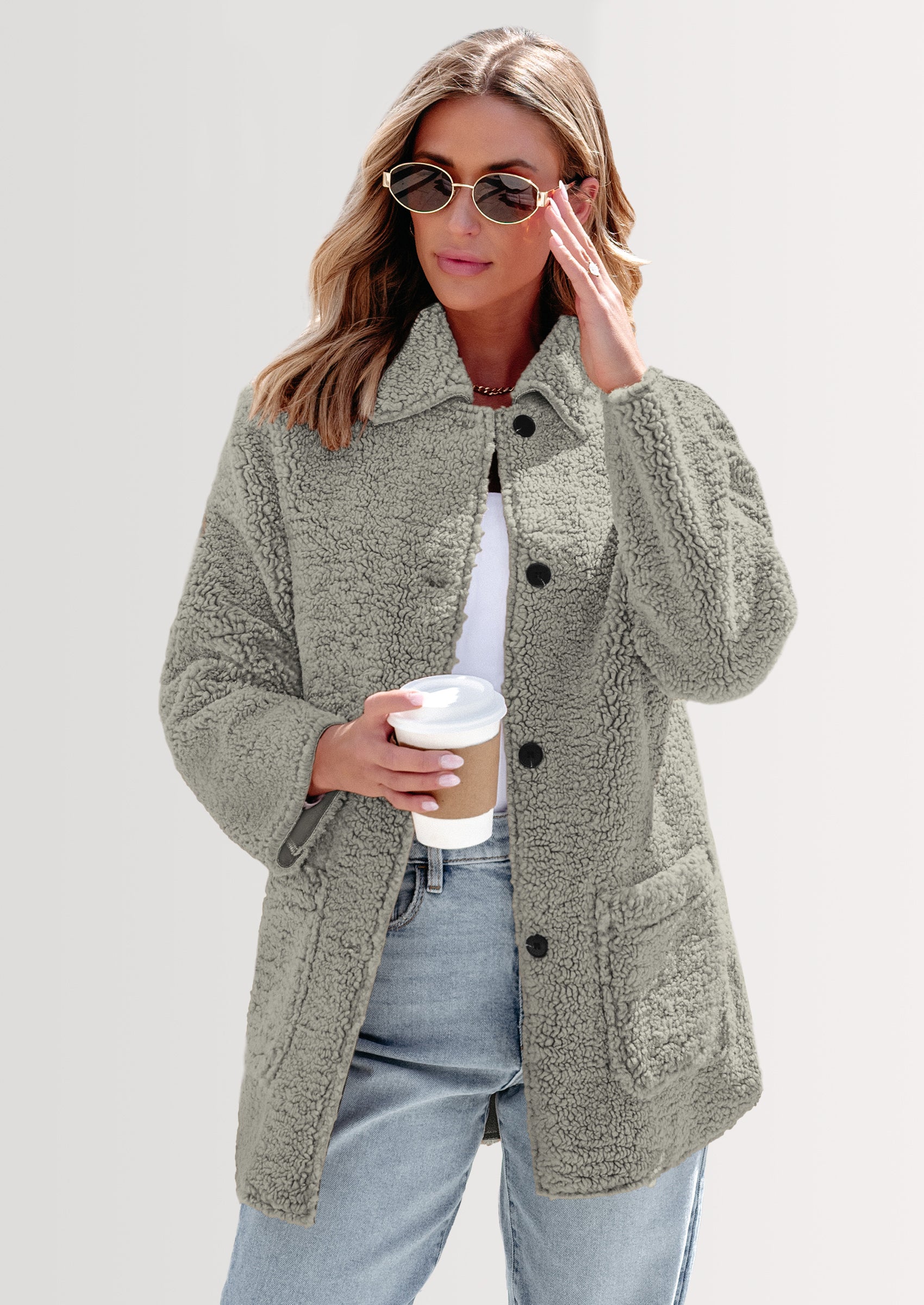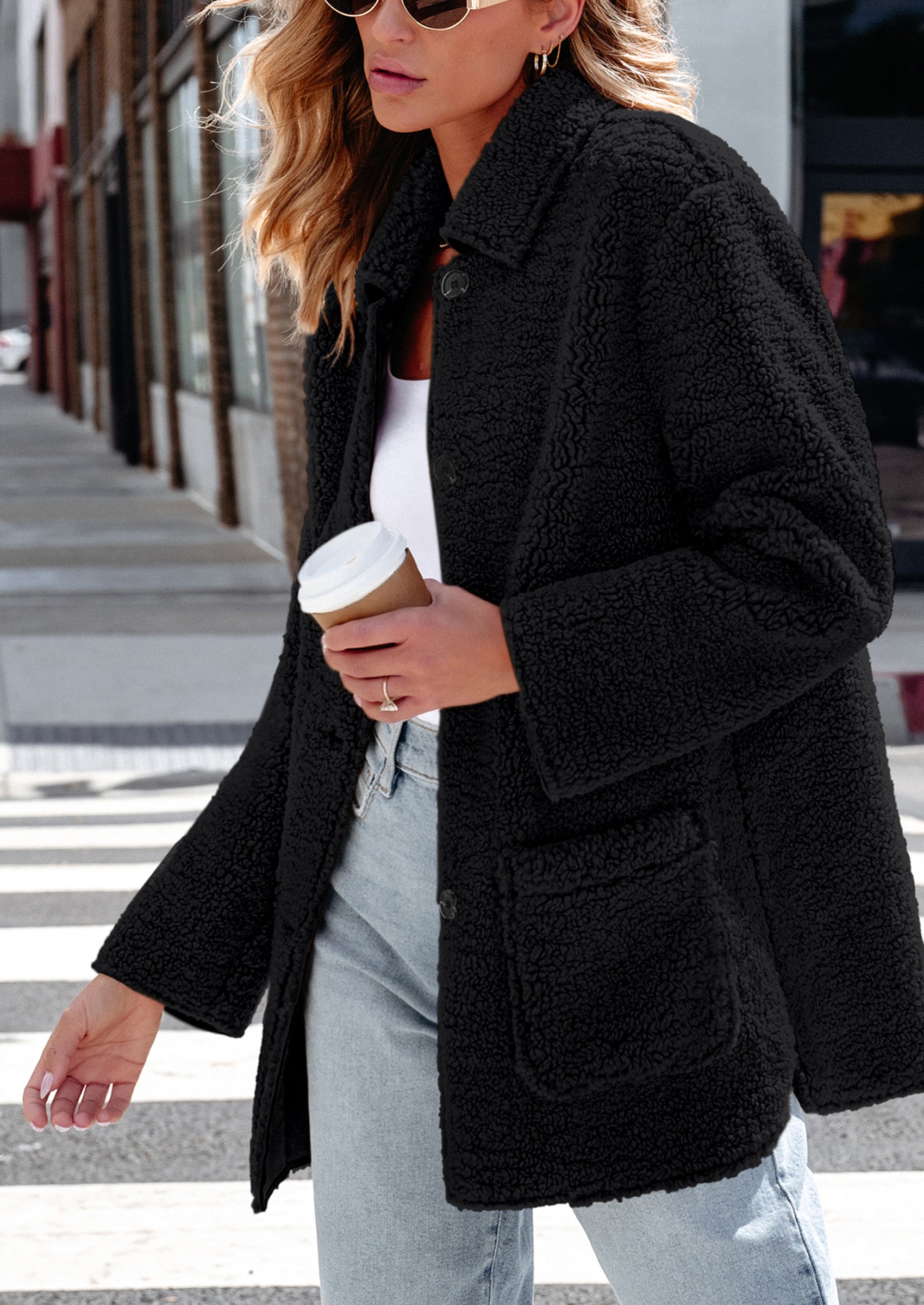 - FEATURES: Winter Jackets For Women/ Button Down Faux Fur Coat/ Trendy Sherpa Jacket Women/ Lapel Collared Jackets For Women Fashion Dressy/ Warm Jackets For Women With Pockets/ Fuzzy Jackets For Women/ Teddy Coat/ Ladies Outerwear/ Fall Winter Outfits For Women