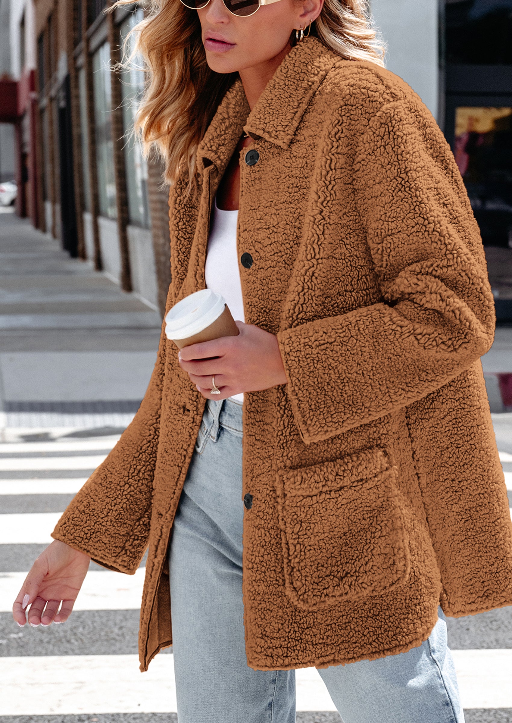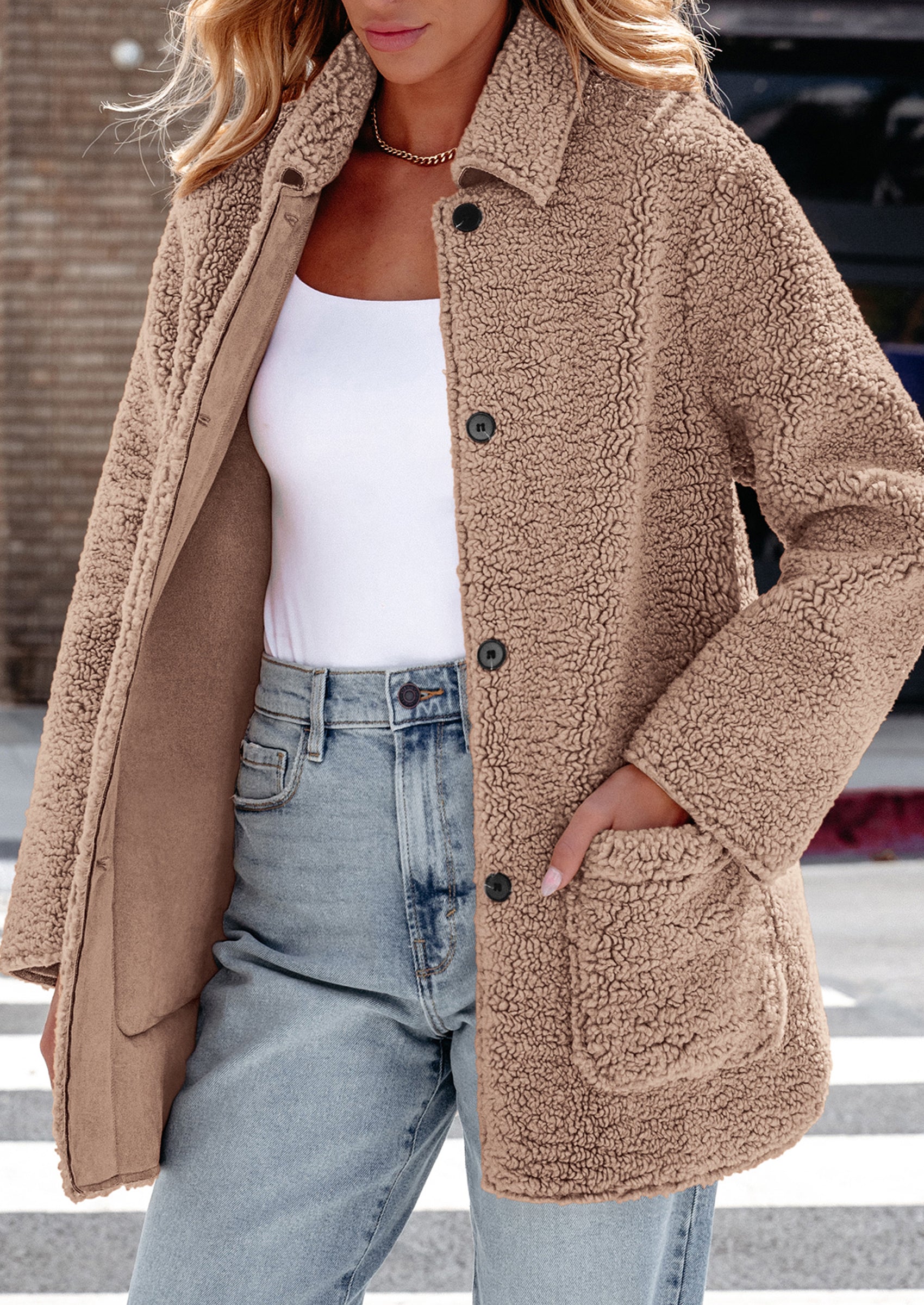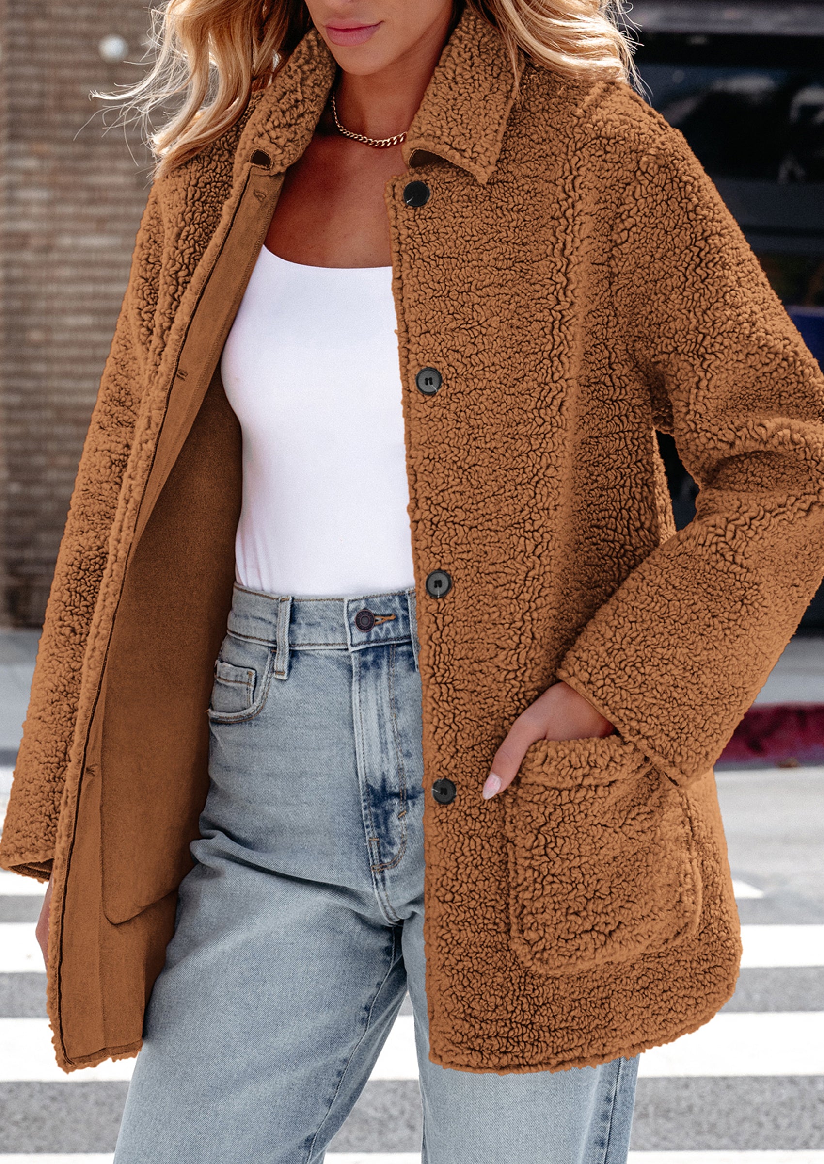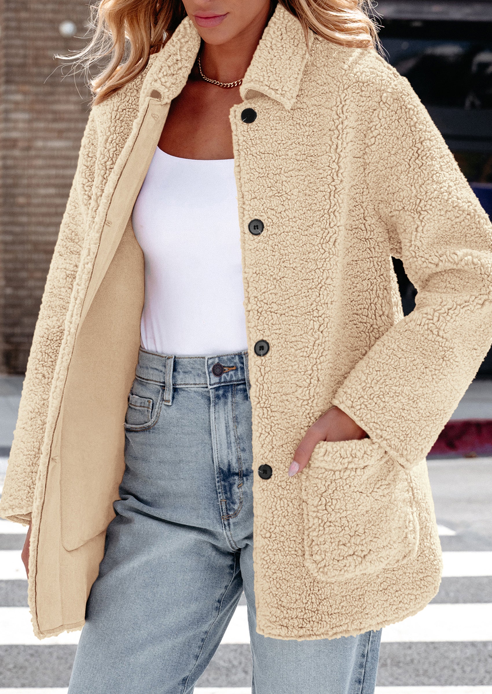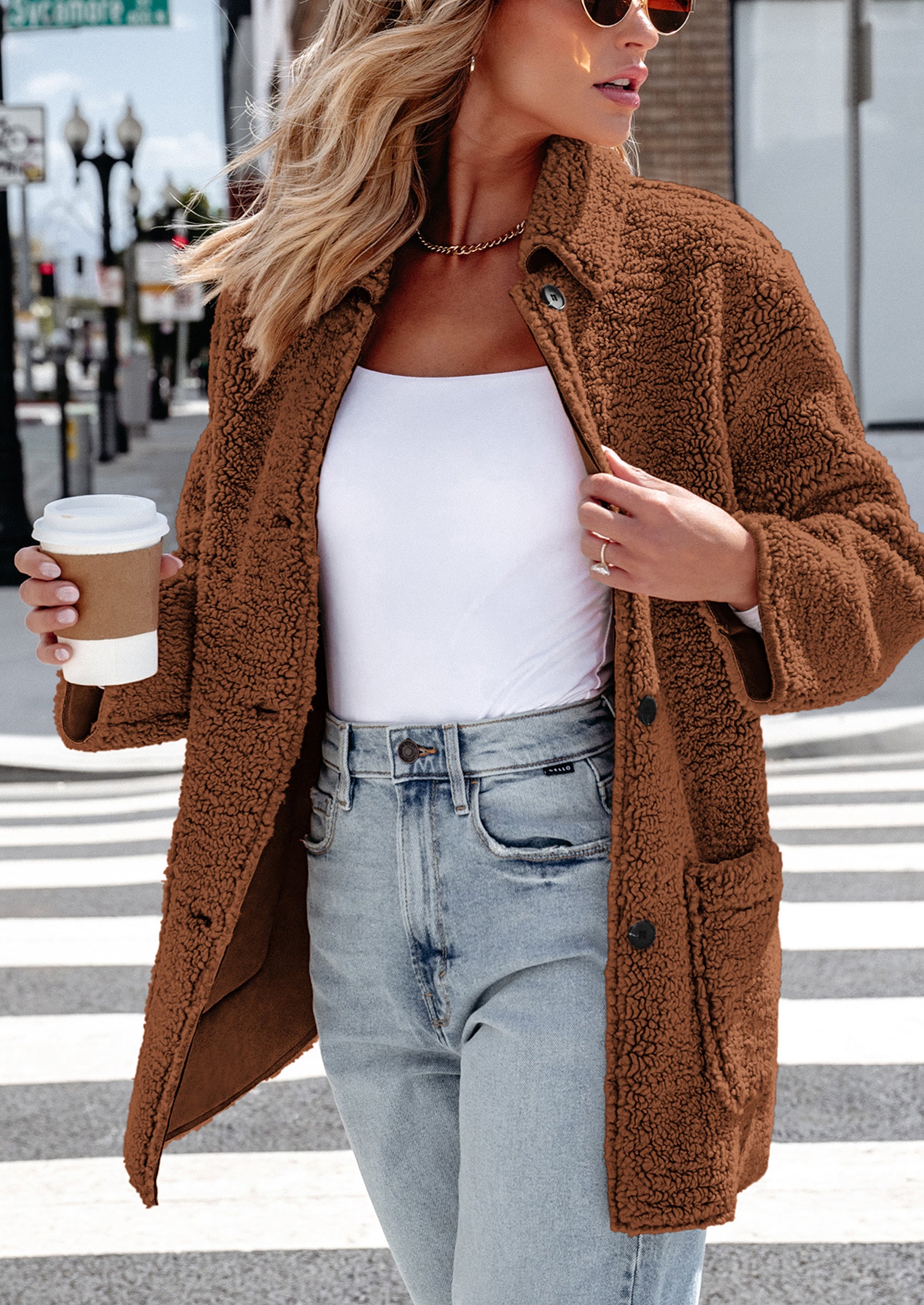 - FEATURES: Winter Jackets For Women/ Button Down Faux Fur Coat/ Trendy Sherpa Jacket Women/ Lapel Collared Jackets For Women Fashion Dressy/ Warm Jackets For Women With Pockets/ Fuzzy Jackets For Women/ Teddy Coat/ Ladies Outerwear/ Fall Winter Outfits For Women