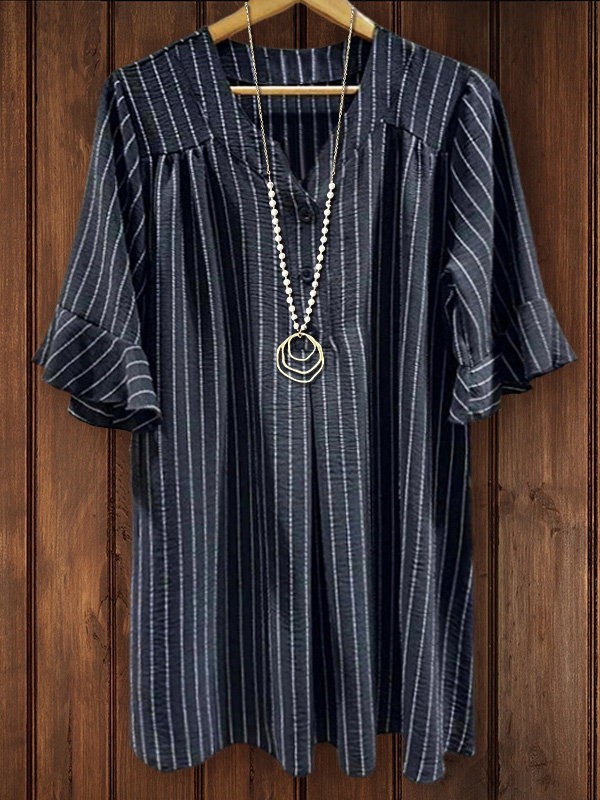 Featuring a vertical stripe print and pleated textured fabric, this dress looks casual yet chic. The ruffled sleeves feature a mid-sleeve length and a relaxed fit, perfect for hanging out with friends or a fun, comfortable weekend.