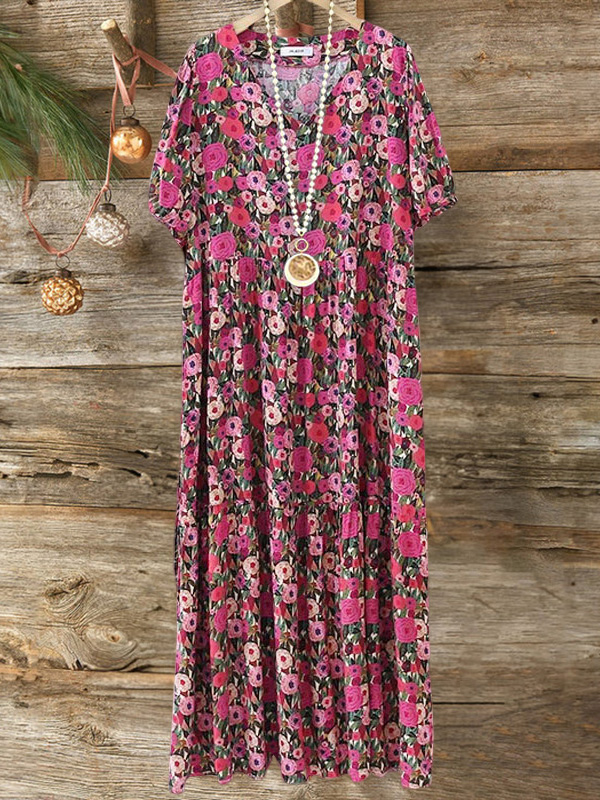 This holiday fashion dress uses special style printing, V-neck design and waist shirring design to perfectly modify the figure. Rayon fabric is not stuffy when worn in summer. The dress is very suitable for leisure travel!