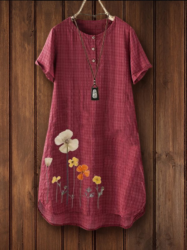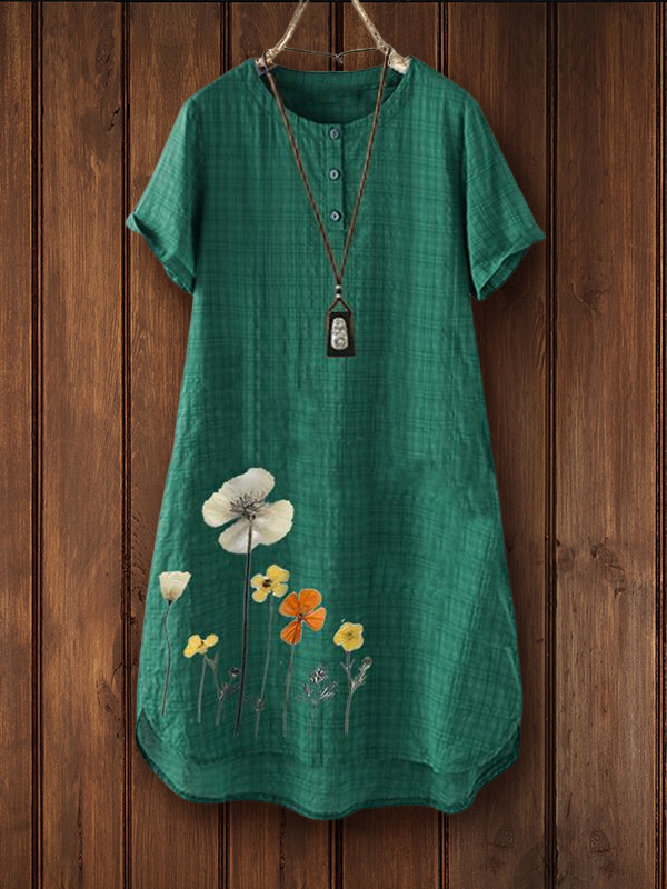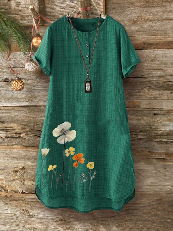 This dress is made of vintage green and red base colors, and the beautiful flower pattern is printed on the bottom of the skirt, giving this dress a mysterious and elegant temperament, and the loose fit can accommodate different body types.