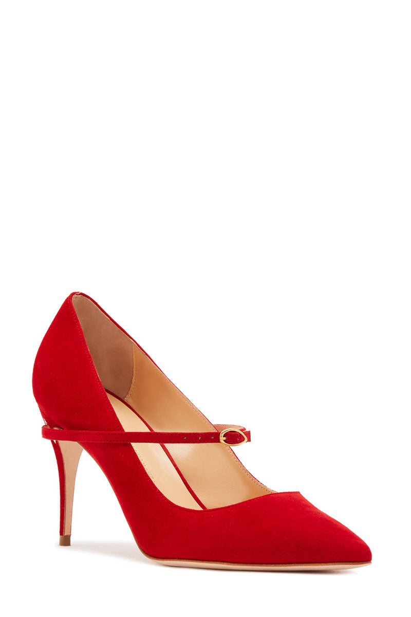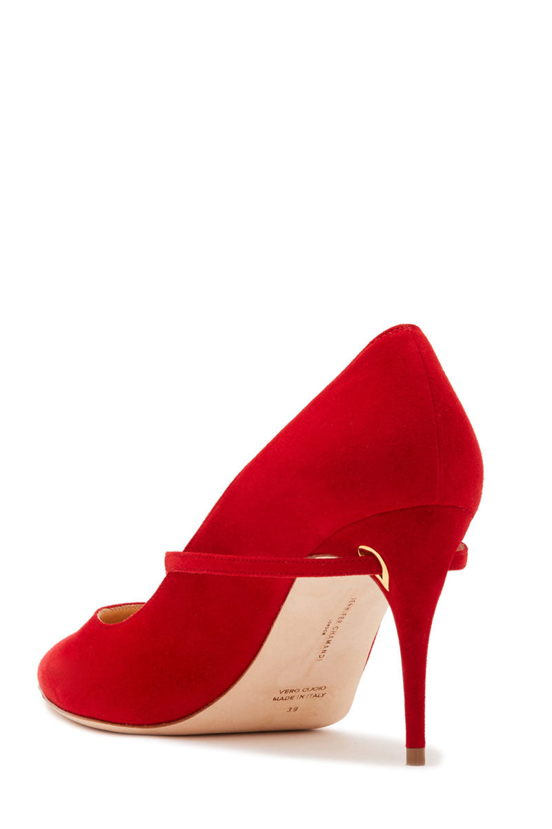 Where it all began. The iconic Lorenzo pump combines timeless elegance with Jennifer Chamandi’s patented ‘Eye of the Needle’ heel signature. Scarlet red suede is handcrafted by Italian artisans into a comfortable and supremely balanced slip on pump with an 85mm heel—for the ultimate is chic comfort. The Lorenzo can be worn two ways: with or without a fine leather strap threaded through the Eye of the Needle and buckled across the foot, ensuring you get maximum mileage from your beautiful new shoes. The strap is removable for versatility, offering both a more classic and more trend-forward look
