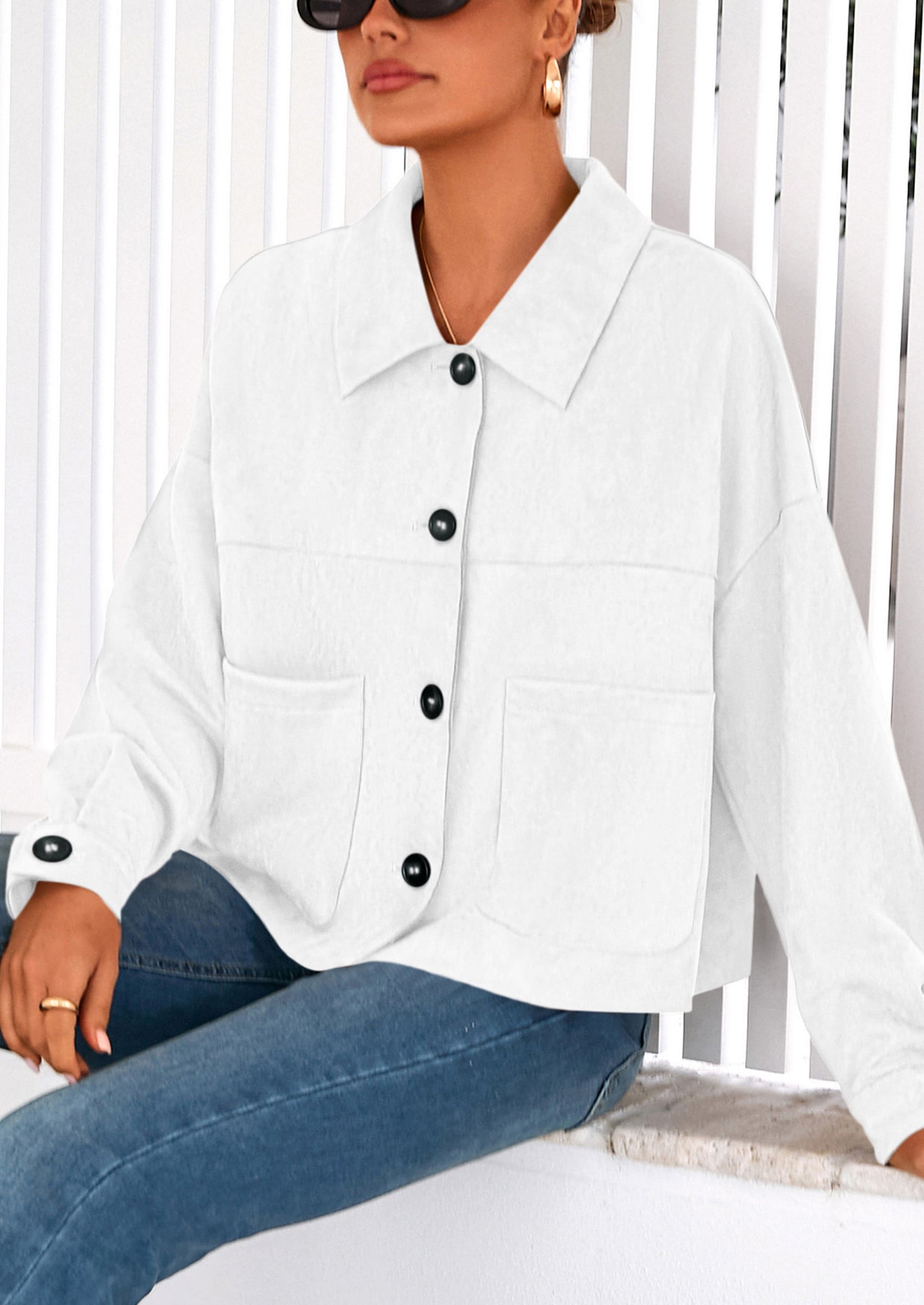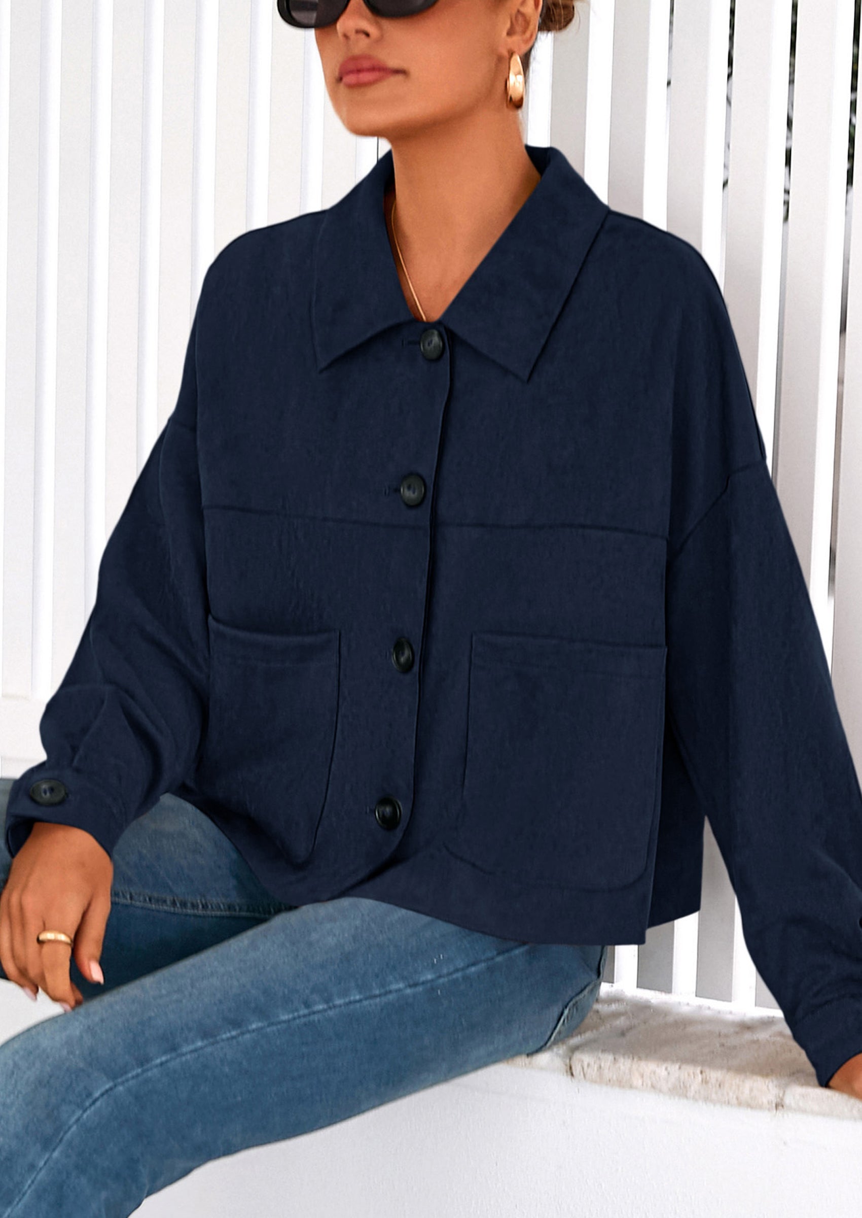 - Matching Style: The relaxed fit provides comfortable movement while maintaining a polished appearance, suitable for various styling options. This versatile piece creates an elevated casual look that pairs well with jeans, dresses and skirts