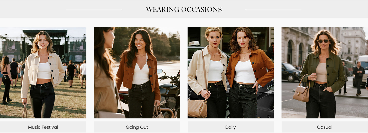 - Occasions: Elevate your wardrobe with this aviator-inspired jacket, designed to seamlessly transition from casual outings to formal events. Whether you're heading to the office, a weekend brunch, or an evening party, this coat delivers effortless elegance
