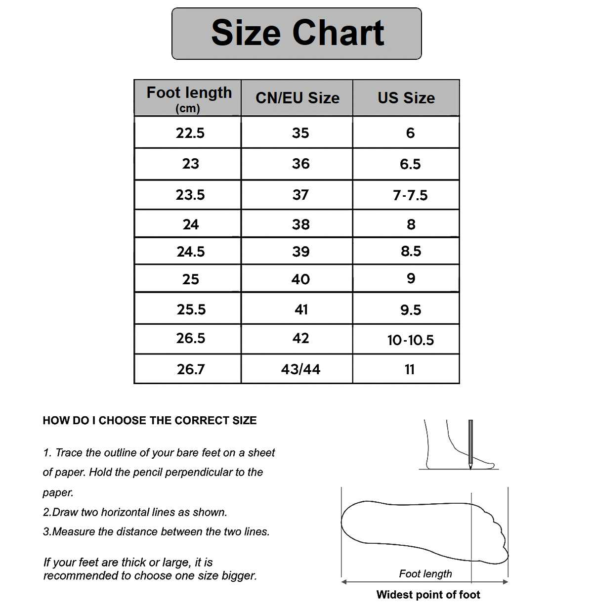 Size chart