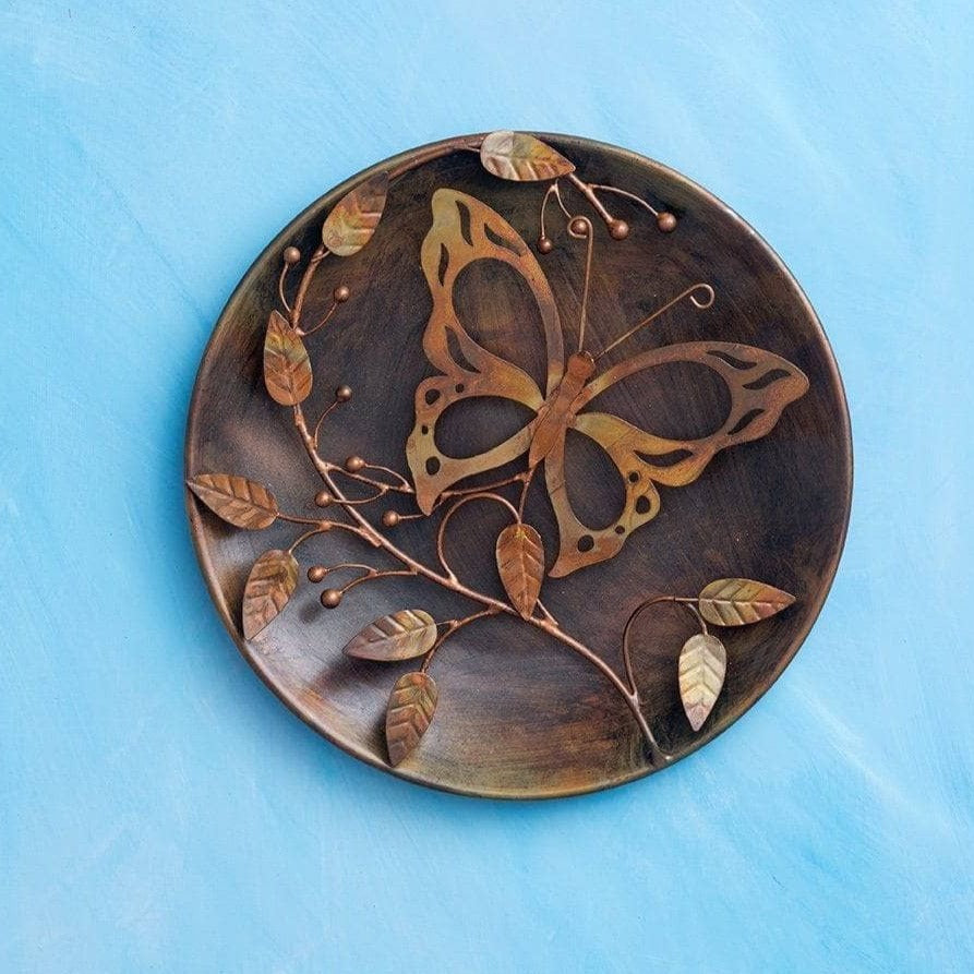 Treat any indoor or outdoor space to a special, nature-inspired touch. Our 12” Flamed Butterfly on Branch Wall Disc is perfect for walls, gates, fences, and other blank spaces that require a bit of decoration. A slightly concave back serves as the backdrop for a butterfly of flamed metal framed by a graceful, leafy branch. A wonderful addition to your own space, this piece is sure to make a delightful gift for someone special! Like all décor from our Happy Gardens collection, this wall hanging has been individually handcrafted, and will bring lasting beauty to your surroundings.