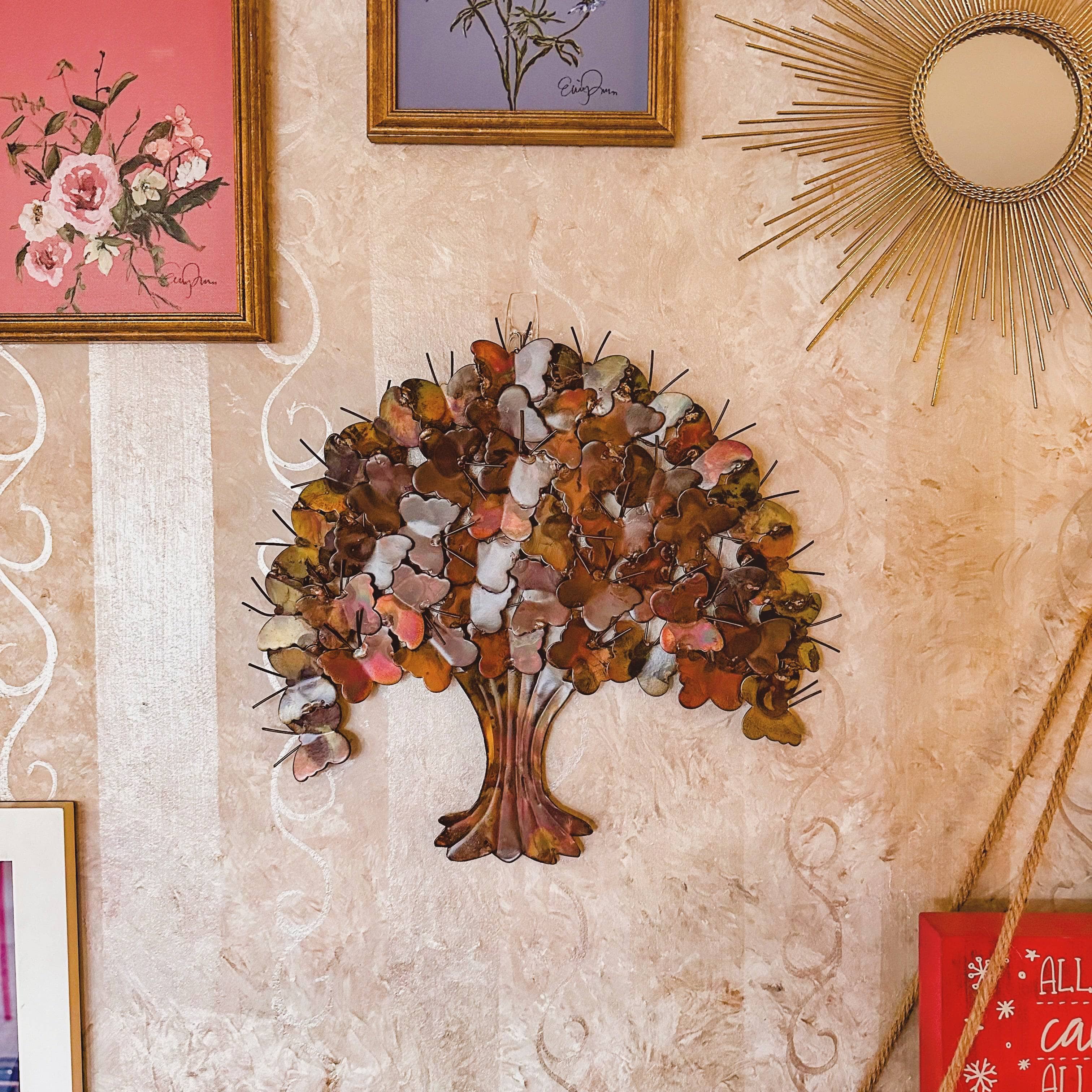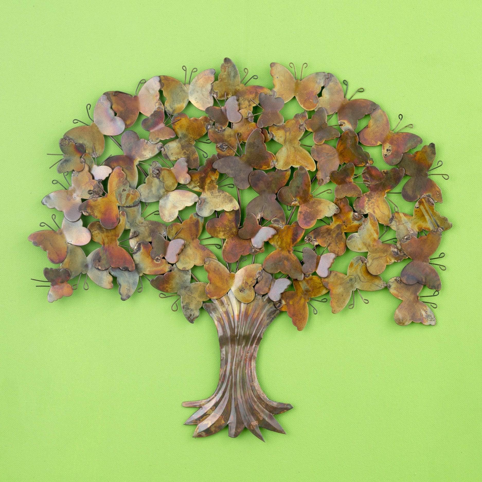 With dozens of flamed metal, handcrafted butterflies sprouting from the branches of an ethereal tree, this wall hanging is anything but ordinary. Mount it to a drab wall, a fence, the exterior of your garden shed—any space that needs a bit of charm. No matter where you place it, this ornate piece is sure to start a conversation.