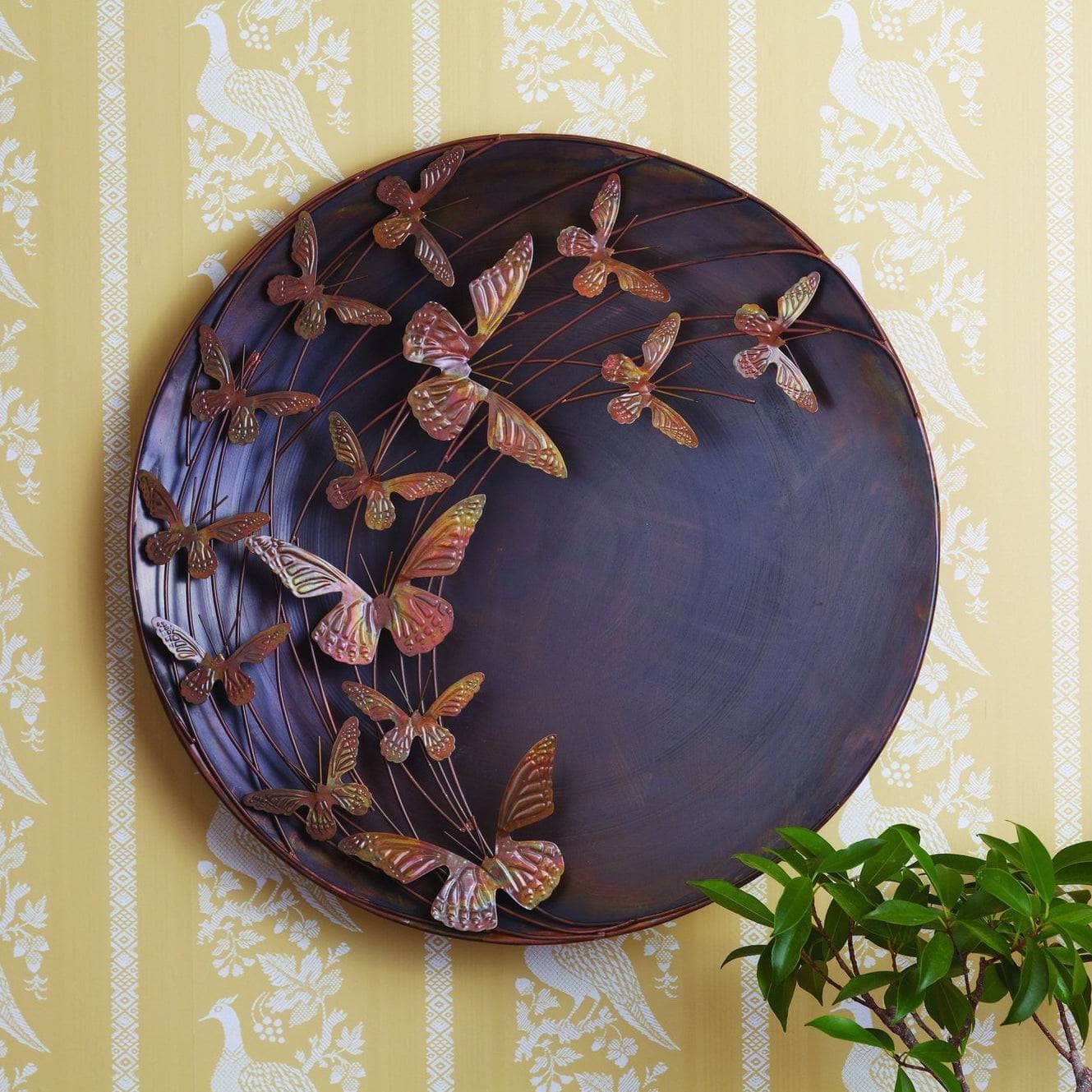Add peaceful ambience to any space. Our 23” Flamed Raised Butterflies Wall Disc offers neutral colors and plenty of textured detail, imparting a sense of motion while meshing beautifully with a variety of settings. The butterflies’ flamed finish is subtly iridescent, providing wonderful contrast against the darker background. Like other Happy Gardens wall decor, this disc has been individually handcrafted, and will bring lasting beauty to your surroundings.