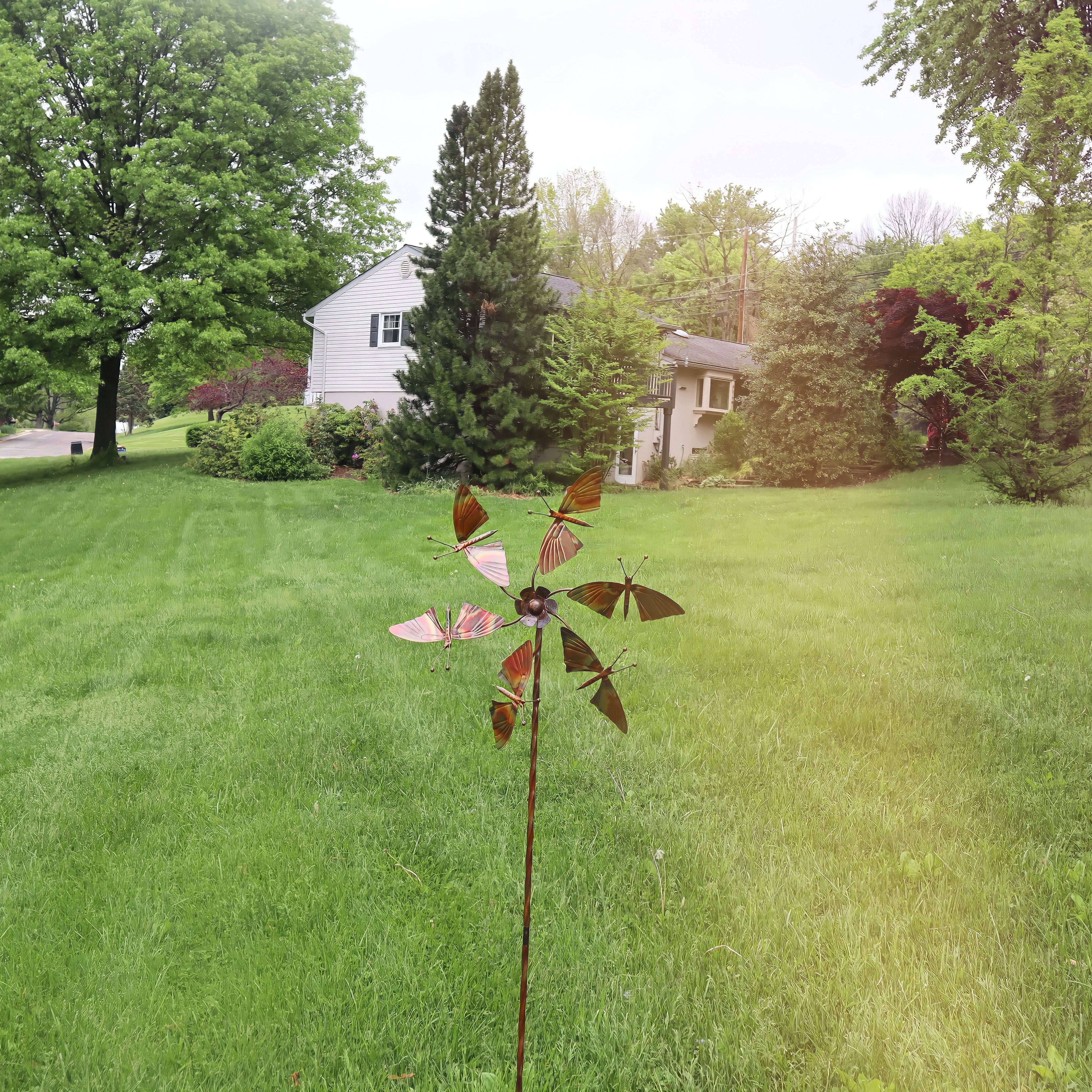 The detailed gracefulness of our Butterflies Wind Spinner makes it a great gift for any gardener interested in sprucing up their outdoor space–even if that gardener is you! Featuring six iridescent butterflies that truly sparkle, this spinner is a favorite of many Happy Gardens customers. Like all our spinners, this bestselling piece was individually handcrafted and designed to delight.